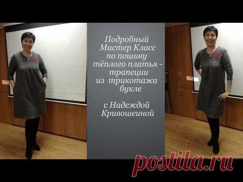 Подробный мастер класс по пошиву тёплого платья из трикотажа- букле, от раскроя, до подгибки низа. До 48 - 52 р. требуется 1.5 метра ткани, при ширине 150.