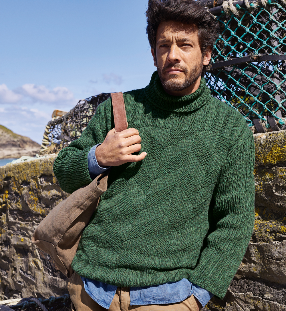 Зеленый мужской свитер с воротником гольф - схема вязания спицами. Вяжем Свитеры на Verena.ru