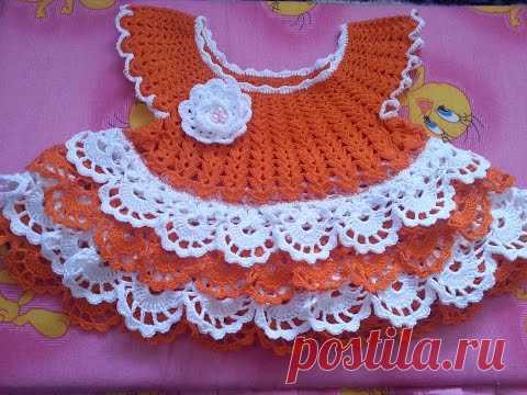 Вязание. Вяжем платье на малышку "ЛУЖОК". Часть 2.( knit dress baby)