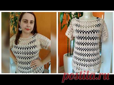 Blusa Ponto Falso Crochê De Grampo / Tecida em Crochê Tradicional.