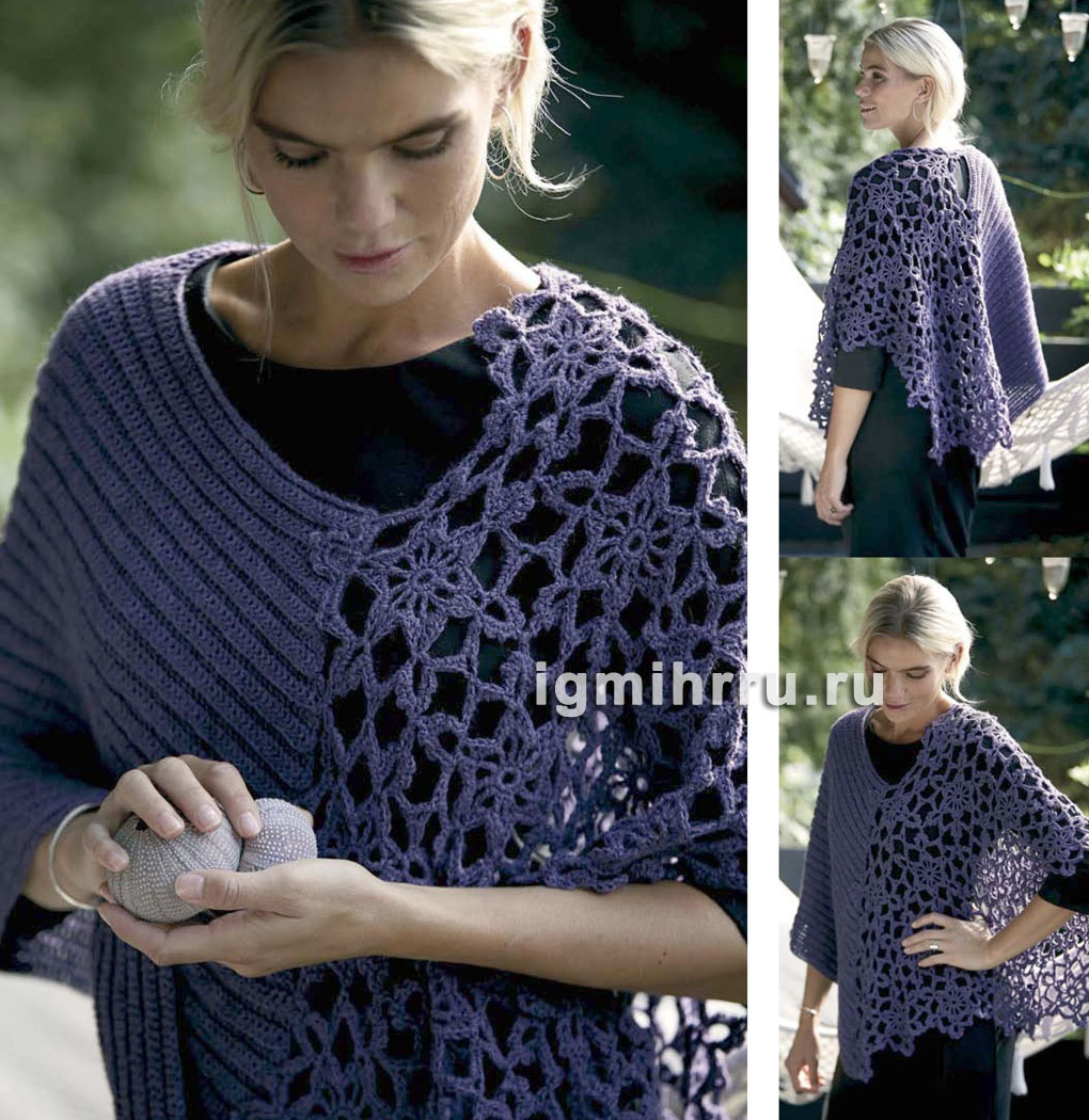 Асимметричное пончо с кружевной частью. Крючком. / igmihrru.ru