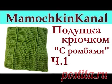Чехол "Подушка с ромбами" Вязание крючком для дома Вязаная декоративная подушка на диван Ч.1