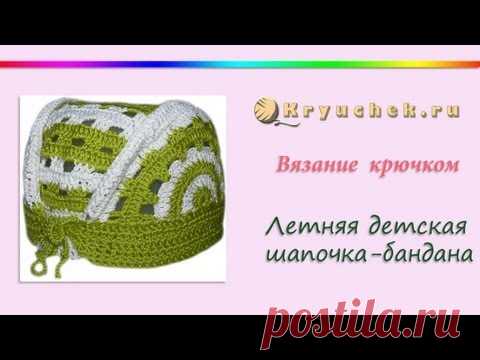Мастер-класс по вязанию крючком летней детской шапочки - банданы. Подробное описание этого МК можно найти на нашем сайте по адресу http://kryuchek.ru/vyazani...