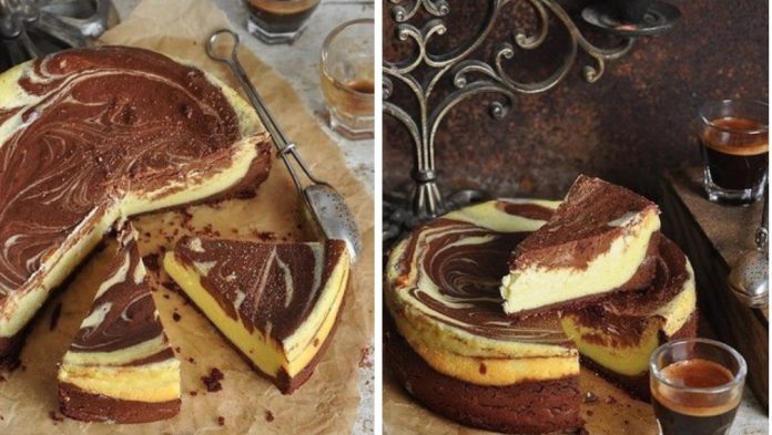 Творожный пирог, по консистенции похожий на чизкейк, с тонким вкусом лимона и кофейными вкраплениями