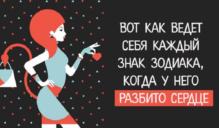 Вот как ведет себя каждый знак Зодиака, когда у него разбито сердце Овен (21 марта — 19 апреля) Он встречается с как можно большим количеством партнеров. Он продолжит напоминать себе, что он – знатный трофей, который нужно завоевать, и не успокоится, пока не найдет того, кто будет относится к нему соответствующе.
