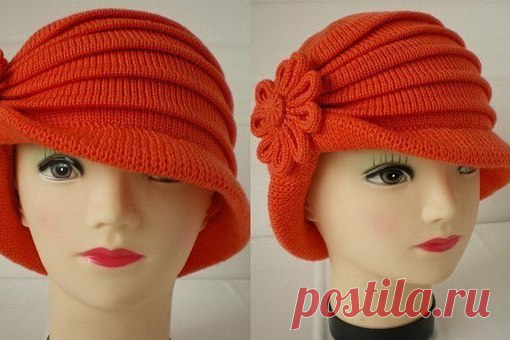 Шапка-шляпка "Ольга" ОГ- 55, 56 элегантно Нашла на Осинке По стыку полей и основной части можно пройти тамбурным швом крючком. Будет более чётким. У цветка набираем 11 петель брос. нить неск.рядов, а затем 1 ряд основной....и далее по схеме. © Angora. Подклад флис.