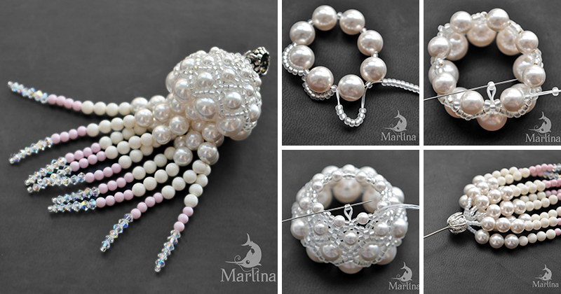 Создаем кулон «Медуза» из жемчуга и бусин Swarovski Когда приходит вдохновение, но нет возможности реализовать это прямо сейчас, многие мастера записывают и/или зарисовывают идеи в особом месте. Я в такие моменты пишу себе письма по электронной почте. До недавнего времени ни одно из этих писем не обрело жизни. Так и письмо о медузе, которое я прислала себе в сентябре прошлого года готово было остаться там.