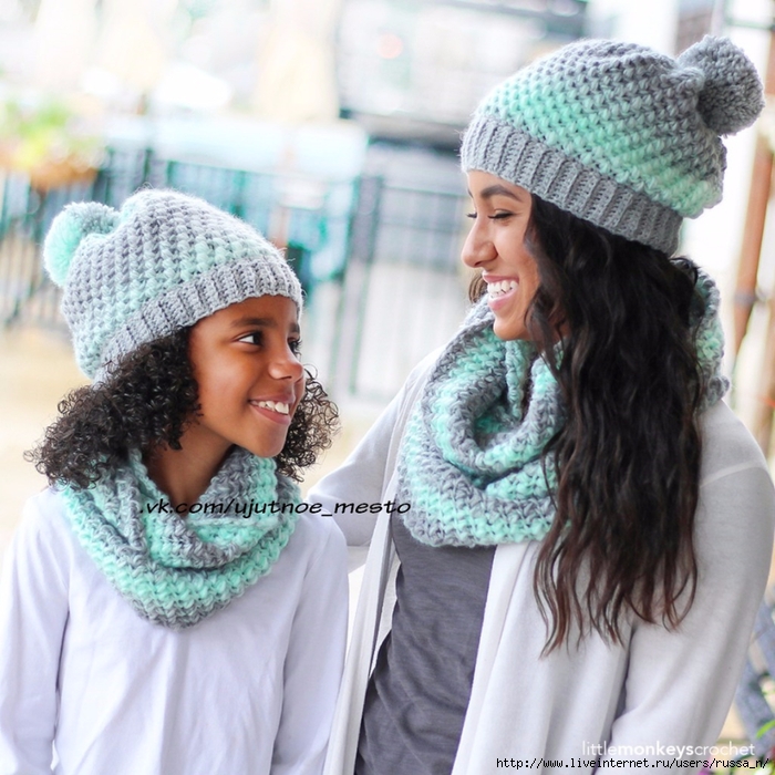 КОМПЛЕКТ ИЗ ШАПКИ И СНУДА КРЮЧКОМ LANDON ОТ REBECCA LANGFORD/ДЕТСКИЙ И ВЗРОСЛЫЙ РАЗМЕРЫ