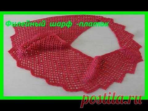 Филейный шарф -платок, crochet scarf- shawl,(шаль №73) - YouTube