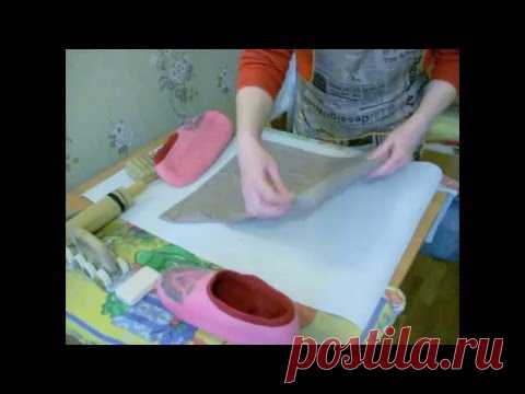 Валяние обуви. Как валять тапочки. Работаем с рубелем.