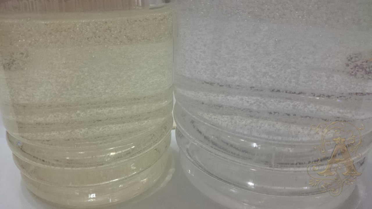 От тряски появляются пузыри-вещь в хозяйстве не нужная, но неизбежная. Можно дать составу немного успокоится, оставив постоять мин.20. Часть пузырей(особо жирных), всплывут и самоликвидируются.