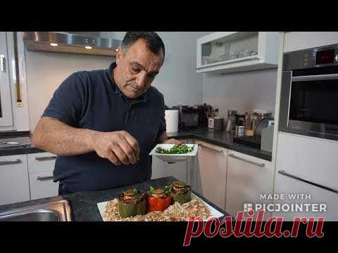 Болгарский перец фаршированный мясом и овощами с гарниром из жаренной вермишели с рисом