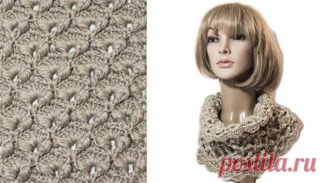 Шарф снуд крючком Узор крючком Пышные столбики Вяжем по схемам Как связать связать крючком снуд, шарф по кругу. Мы будем вязать по схеме очень интересный узор, где использованы пышные столбики. Благодаря подробному описа...