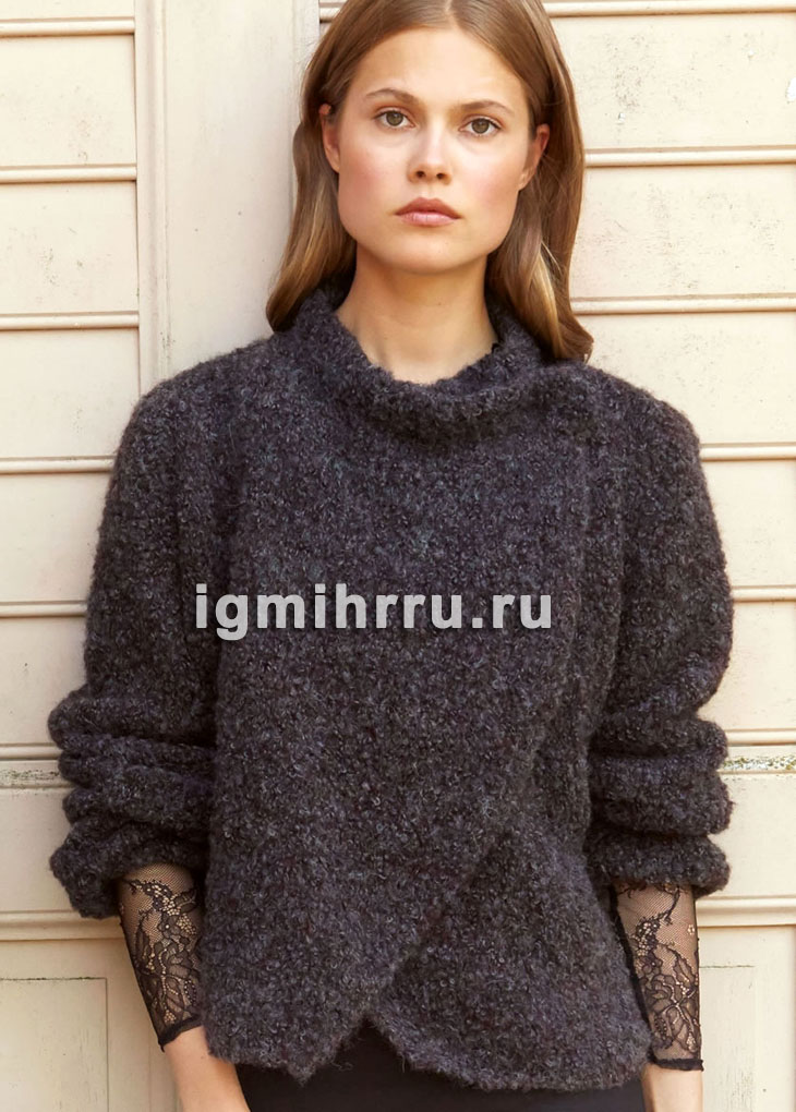 Жакет из теплой буклированной пряжи, с запахивающимися полочками. Вязание спицами