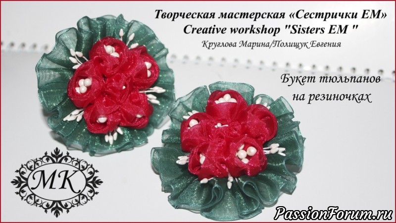 Мастер класс. Тюльпаны из органзы. Сестрички ЕМ - запись пользователя ТМ Сестрички ЕМ (Евгения и Марина) в сообществе Прочие виды рукоделия в категории Канзаши Вы уже знакомы с мастер классом корзинки с цветами, который вышел совсем недавно. А сегодня хочу поделиться с вами такими цветочками из органзы. Соберем сегодня красивый букет на резиночках для малышки. Такие букетики невесомые, т. к.
