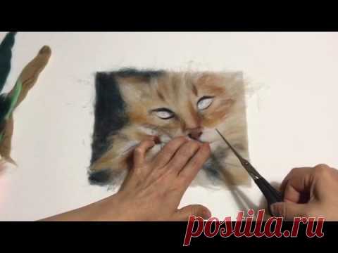 Картины из шерсти для начинающих. Фрагмент видео-урока "МАМА кошка"