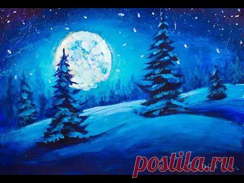 Рисуем НОЧНОЙ ЗИМНИЙ РОЖДЕСТВЕНСКИЙ ПЕЙЗАЖ! ★ Валерий Рыбаков - Как легко нарисовать зиму!