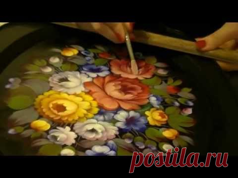 Жостовская роспись. Роскошный букет цветов на овальном подносе! Бликовка