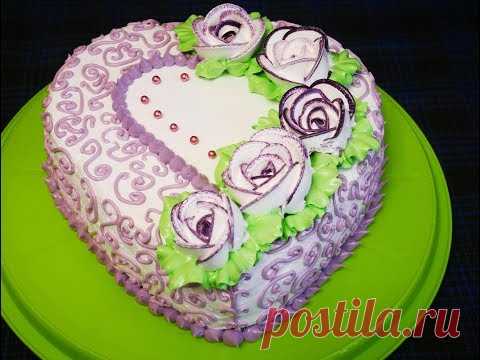 Торт ко дню Влюбленных БИСКВИТНЫЙ торт с ПЕРСИКАМИ украшение торта кремом Готовим с Любовью