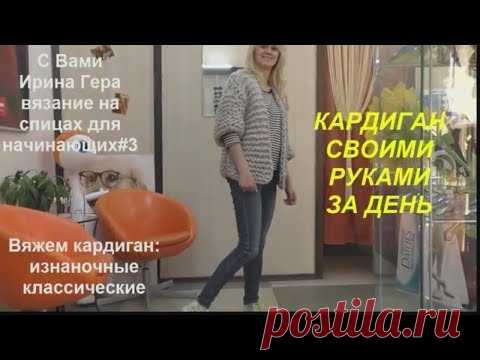 Вязание кардигана. Изнаночные, лицевые - бабушкин способ.(Урок#3.Вязание спицами для начинающих