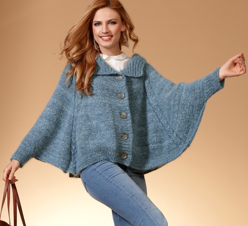 Кейп с отложным воротником Женственный и элегантный кейп с отложным воротником и застежкой на пуговицы. Тонкая деталь — косы, отделяющие линию рукава от спинки и полочек. Нравится публикация и хотите видеть описания кейпов почаще? Дайте нам знать!