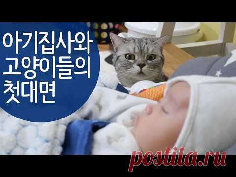 Хозяйка показала котам новорожденного ребенка. Забавные кадры.