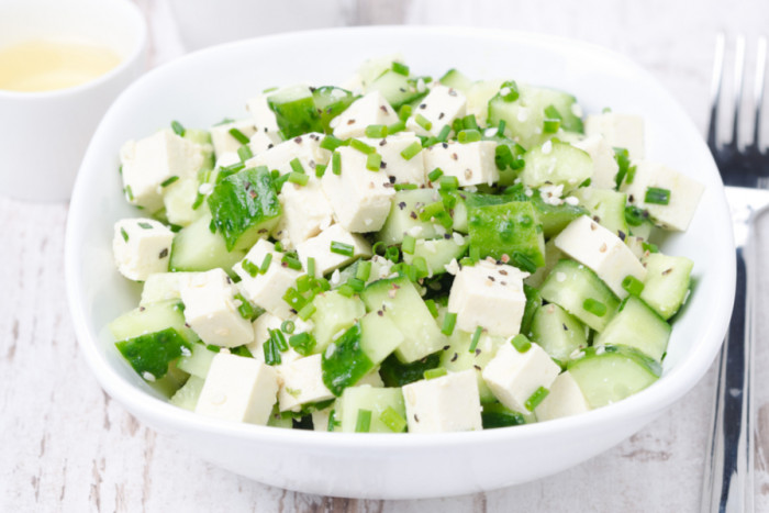 Салат с маринованным сыром тофу и огурцами Предлагаем тебе наш оригинальный рецепт простого и вкусного салата с маринованным тофу и огурцами – он отлично дополнит мясные и рыбные блюда.