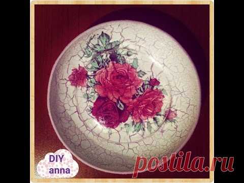 reverse crackle decoupage on plate roses decorations DIY ideas craft tutorial / URADI SAM Dekupaž