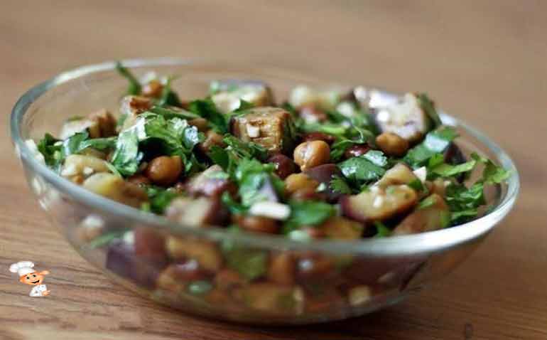 Салат с нутом и баклажанами пошаговый рецепт Салат с нутом и баклажанами заправленный пикантным соусом. Отличное питательное блюдо! Сочетание баклажанов и нута, рождает ароматный, сытный и очень вкусный салат. Особенный вкус этому салату придает заправка с пряными травами и специями.