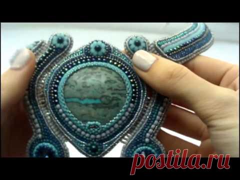 Колье из бисера и камней Ocean. Синее голубое крупное стильное колье. Колье ручной работы купить