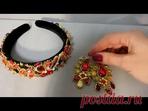 Ободок и серьги в стиле Dolce Gabbana, ручная работа