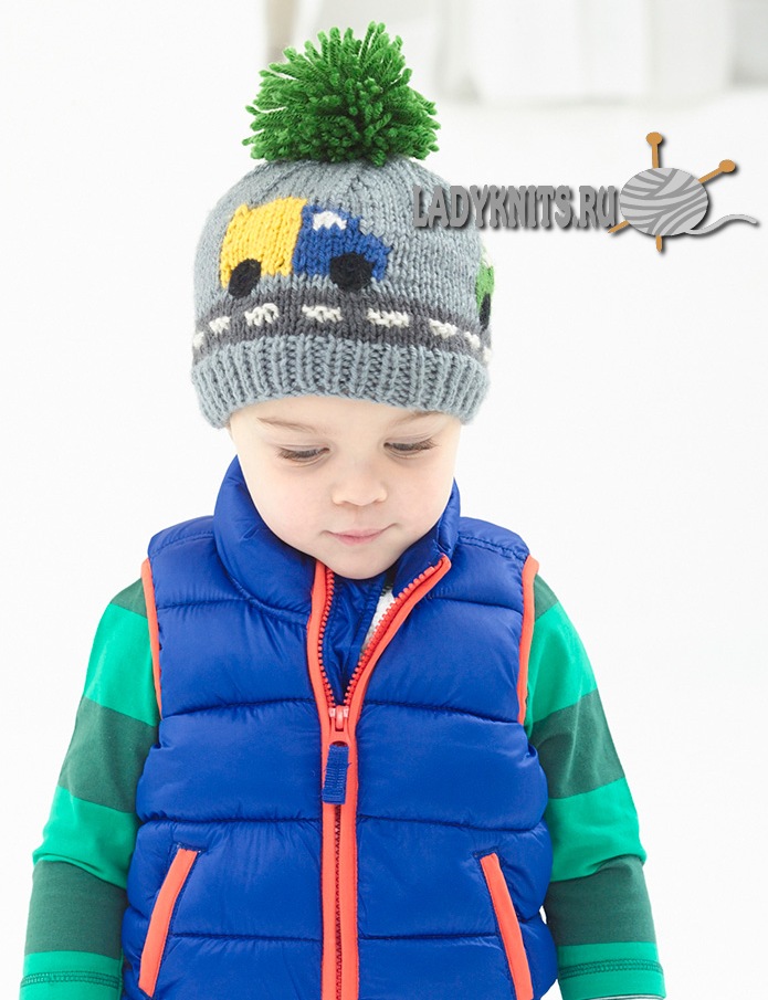 Вязаная спицами шапка для мальчика "Траффик"