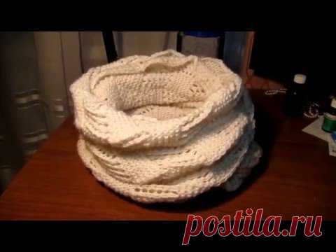 Вяжем круговой ажурный шарф-снуд (хомут) спицами. Мастер-класс вязания для начинающих