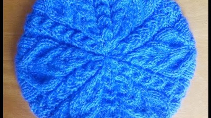 Размер - 50-52. Пряжа с толщиной нити примерно 130 м. на 100 гр. Спицы №2 и №4 Набираем на спицы 90 петель и вяжем резиночкой 2х2 5 см. Затем сразу после резиночки равномерно прибавить еще 38 петель. На лицевой стороне начинаем вязать узор. Рапорт узора 21 петля, На берете 6 рапортов плюс 2 кромочные. Вяжем поп узору вверх 3 рапорта узора и далее делаем убавления, как показано в видео.
