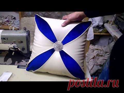 طريقة خياطة مخدة ديكور بالجلد لزينة الصالون المغربي--How to sew a pillow