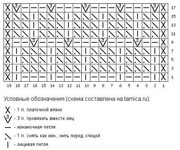 Вязание на спицах - Узоры спицами - Узор "Ячейки"