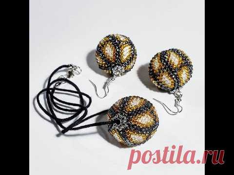 Серьги \ Подвеска. Обвязываем бусину бисером. Процесс бисеровязания. TUTORIAL. DIY
