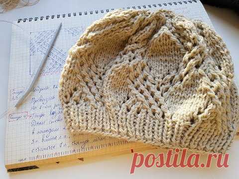 Шапка спицами ажурный ромб. Очень подробный МК от А до Я.
