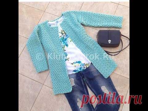 Вязанный летний кардиган "Мята" Рельефный узор зигзаг Часть 1