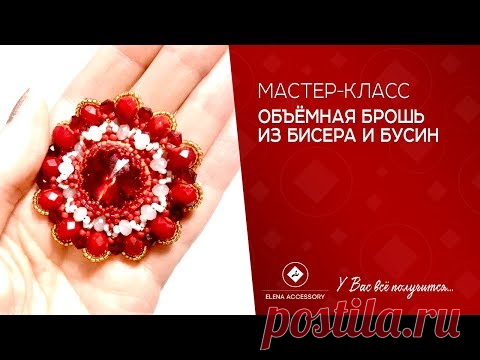 Объёмная брошь из бисера и бусин. Мастер класс.