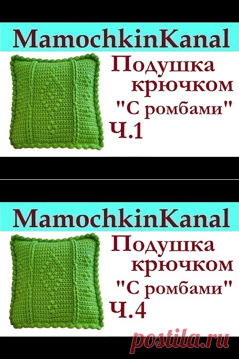 (287) Вязаная крючком "Подушка с ромбами" Обвязка пышными столбиками Ч.4 - YouTube