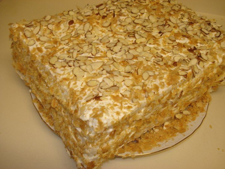 Самый вкусный торт «Наполеон» с миндалём, абрикосами и черносливом Самый вкусный торт «Наполеон» с миндалём, абрикосами и черносливом