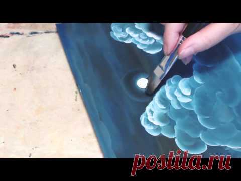 Onestroke, Painting the moon and clouds, Рисуем ночные облака двойным мазком, irishkalia