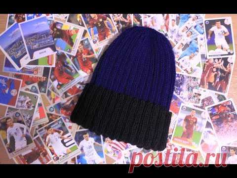 МК Мужская шапка с подворотом вязанная спицами резинкой 2х2. 3-й способ закрытия макушки - YouTube