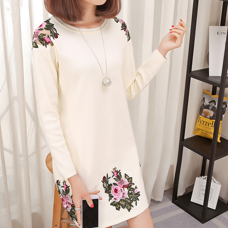 Плюс Размеры XL, XXL, XXXL Мода 2017 Осенне зимняя Дамская обувь Новое вязаное платье с длинными рукавами и цветочным принтом Вышивка мини Платья свитеры 1433 купить на AliExpress