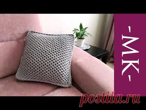 Вязаная подушка спицами. Как связать чехол/наволочку для подушки из трикотажной пряжи|Crochet Pillow