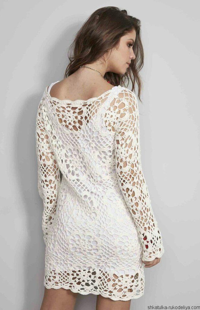 Белое платье из мотивов крючком. Схема ажурного мотива для платья | Шкатулка рукоделия