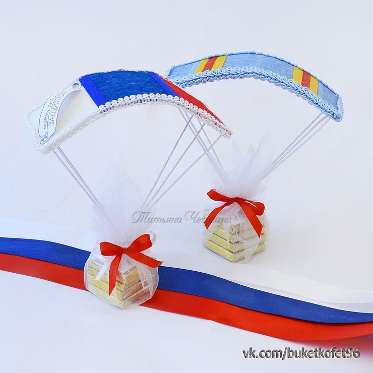 МК: Мини-презент из конфет к 23 февраля "Парашют".