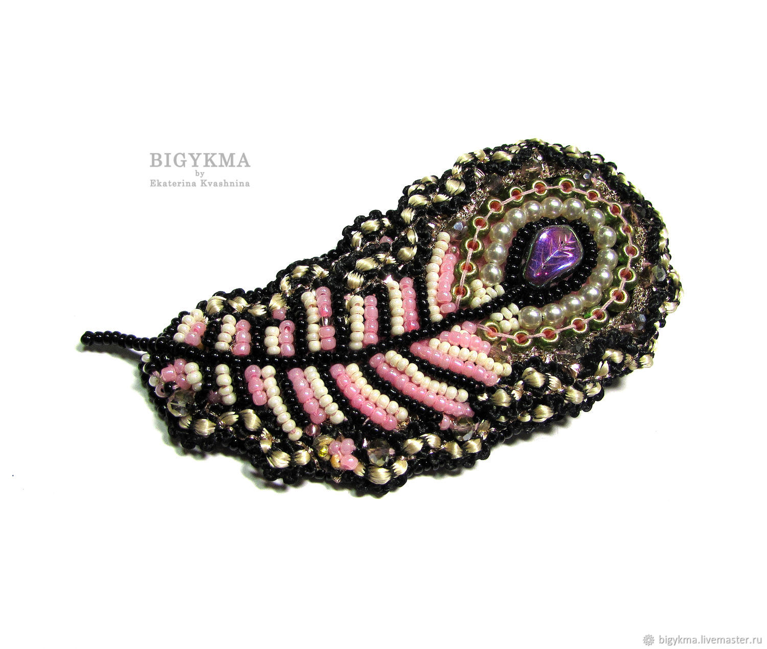 брошь из бисера перо