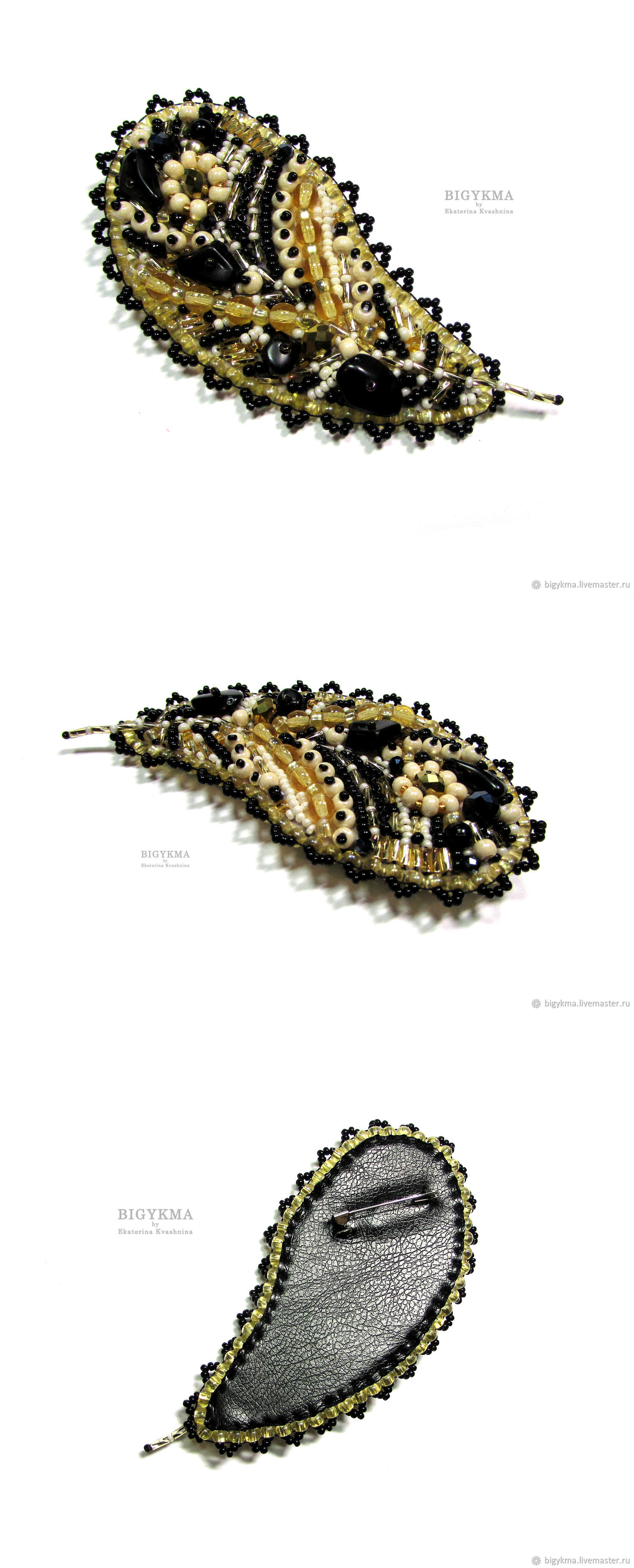 Брошь 'Золото инков' с черным агатом. Брошь-перо – купить в интернет-магазине на Ярмарке Мастеров с доставкой